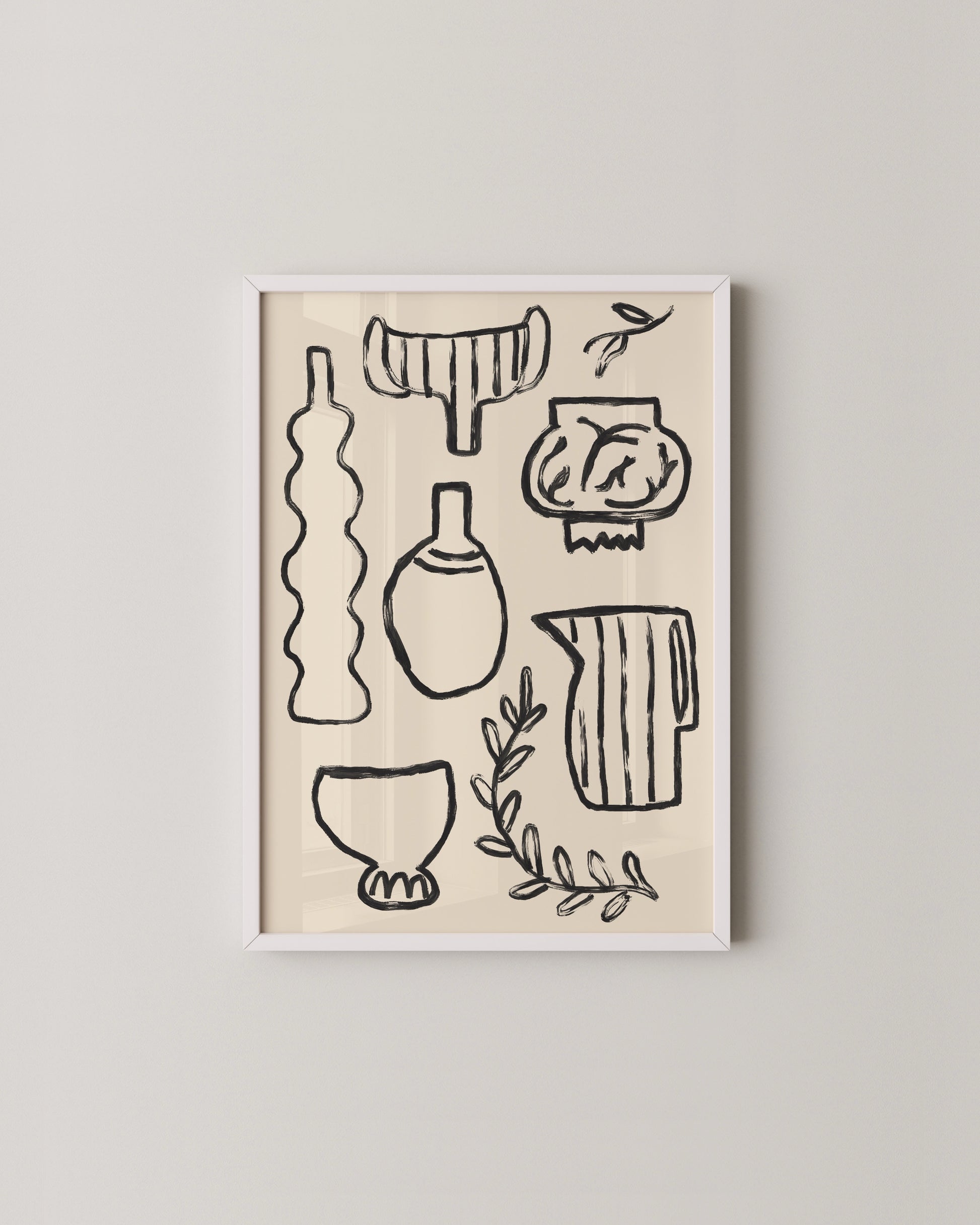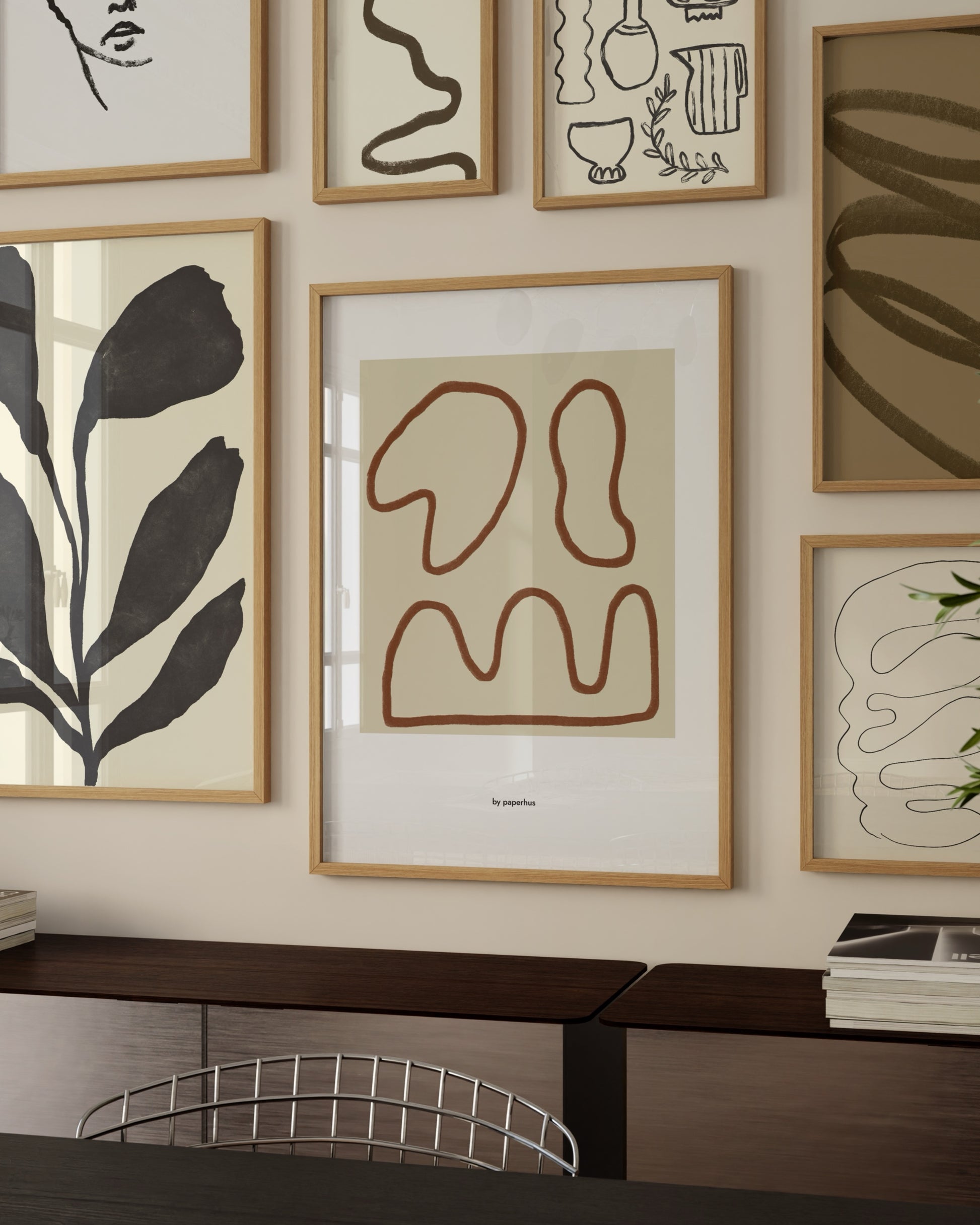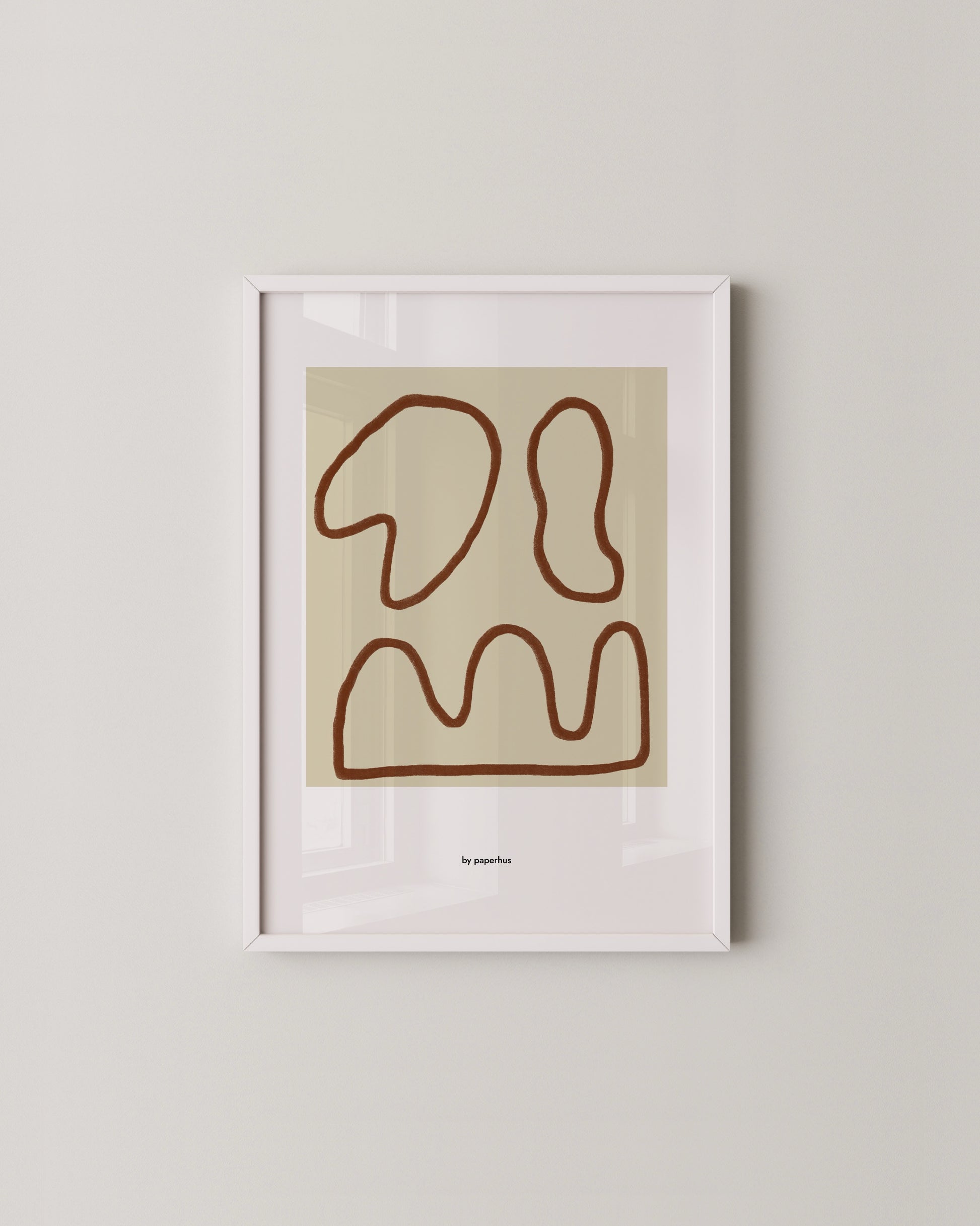 A modern abstract print featuring soft, organic line forms in warm earthy tones. Set against a neutral background, the simple shapes create a calm, balanced composition that works beautifully in design-led interiors. This piece pairs effortlessly with other abstract, botanical, or line-based artworks and suits living rooms, dining spaces, hallways, or home offices. Minimal, timeless, and easy to style as part of a gallery wall or on its own.