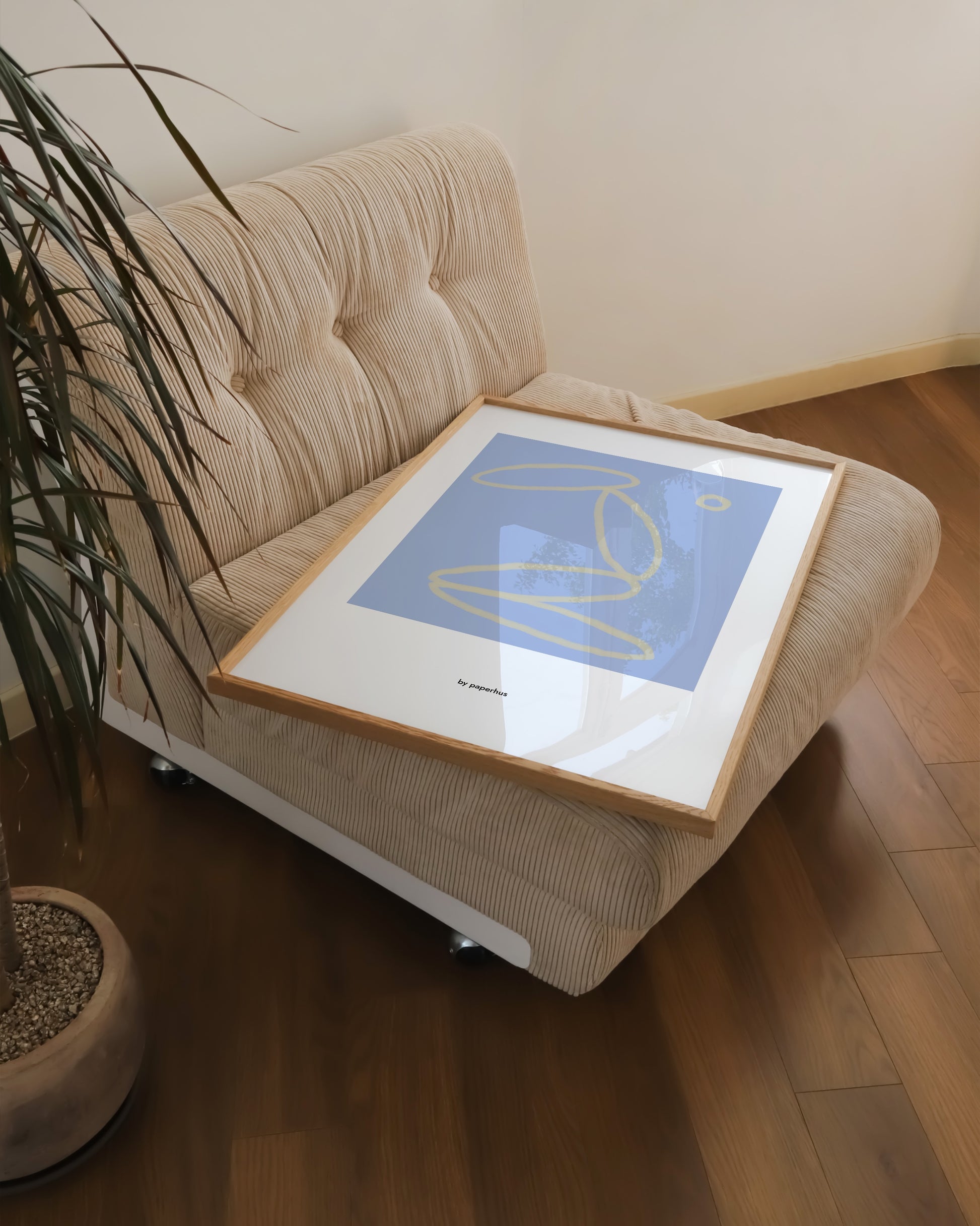 A soft, minimalist abstract print featuring loose curved lines over a muted blue background. Calm and balanced, this artwork brings a touch of quiet sophistication to any interior, perfect for modern, Scandinavian, or minimal spaces.