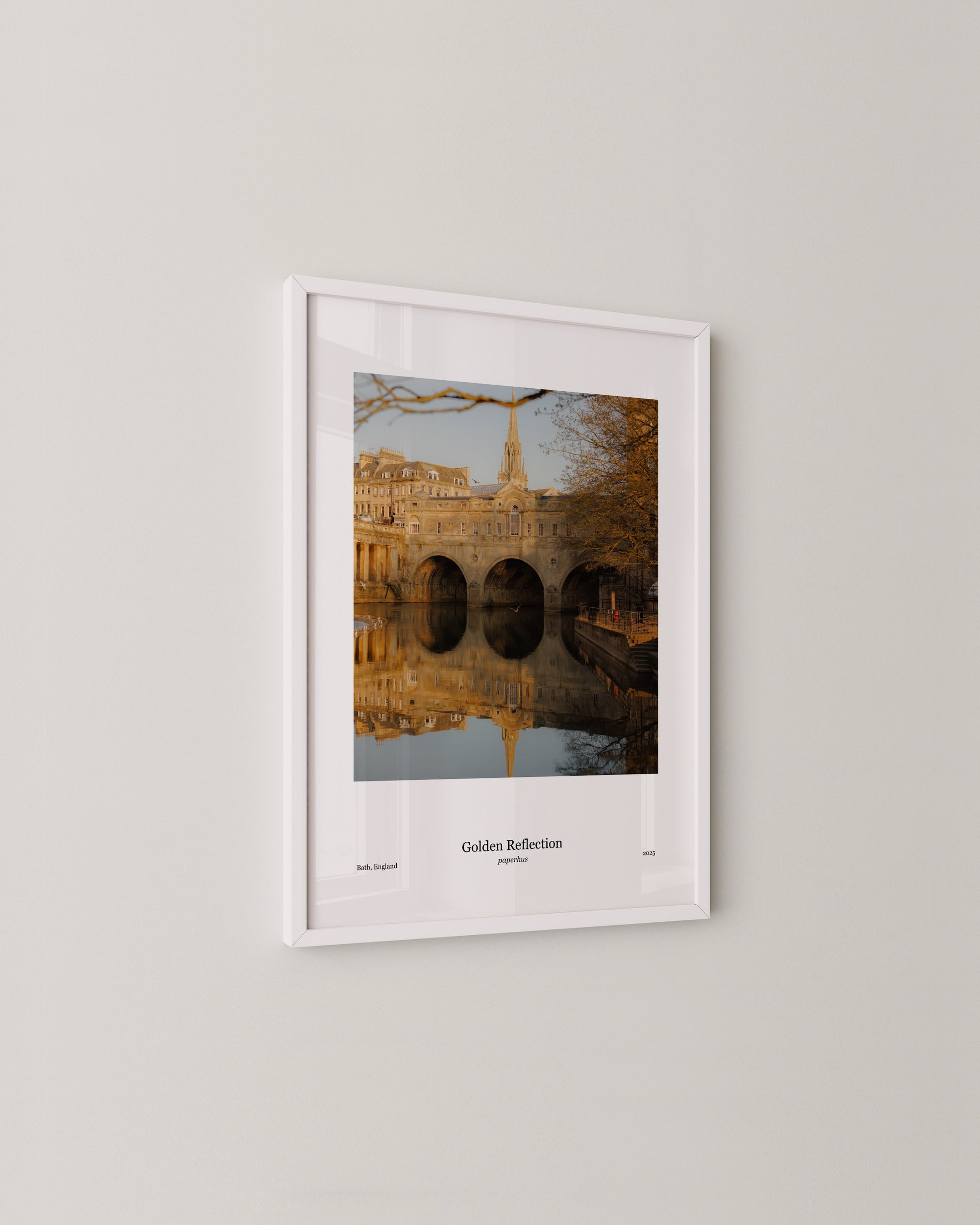 Warm light and calm reflections bring this classic Bath scene to life. Captured in soft golden tones, this architectural print adds an elegant and timeless touch, perfect for creating a peaceful, travel-inspired space.