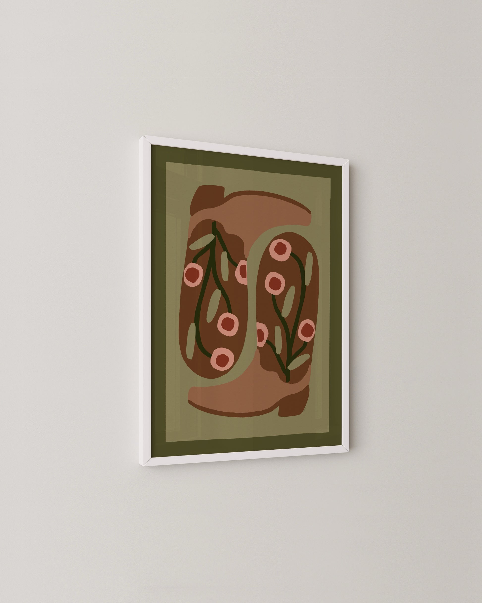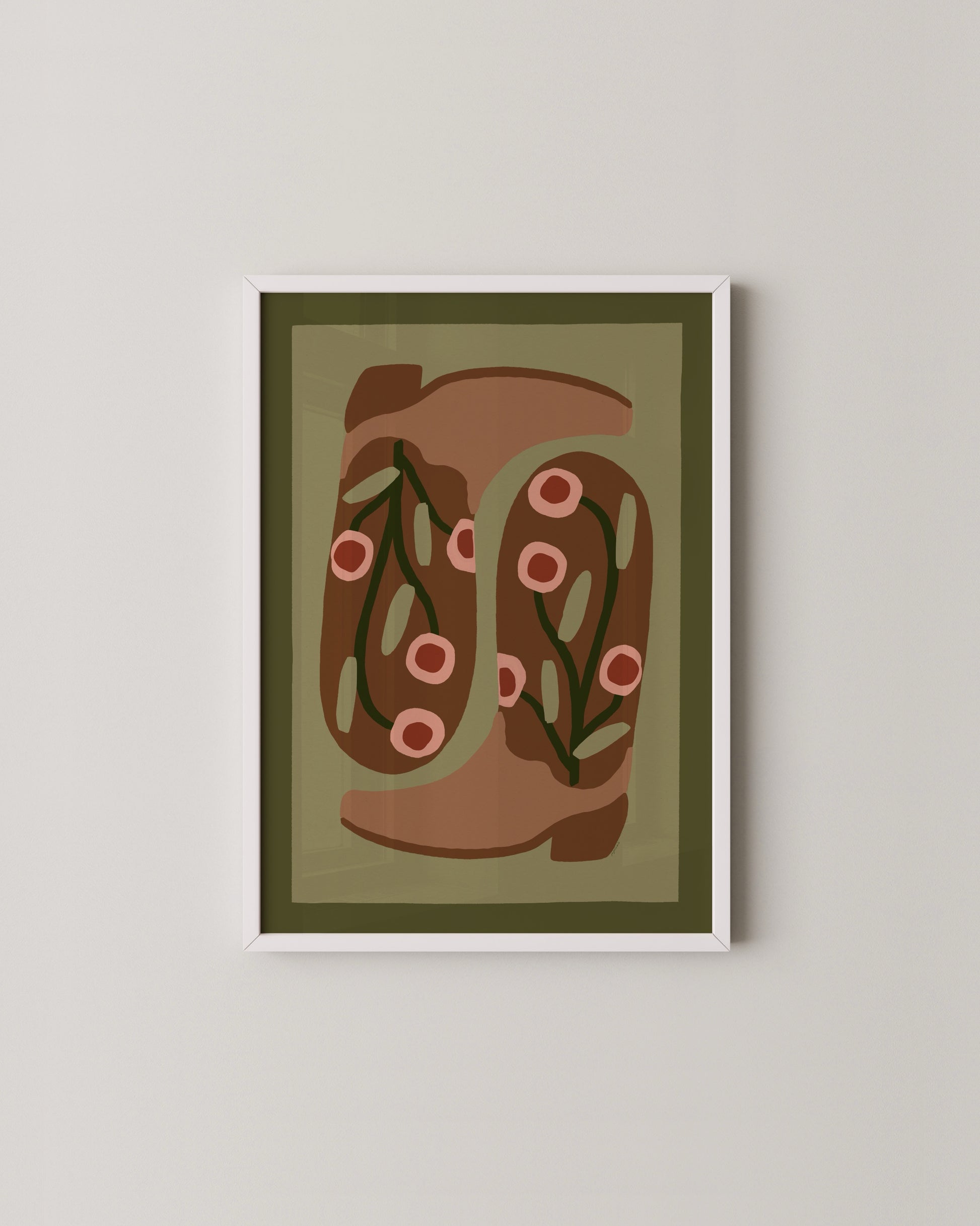 Western Boots Print | Retro Cowgirl Art in Earthy Tones