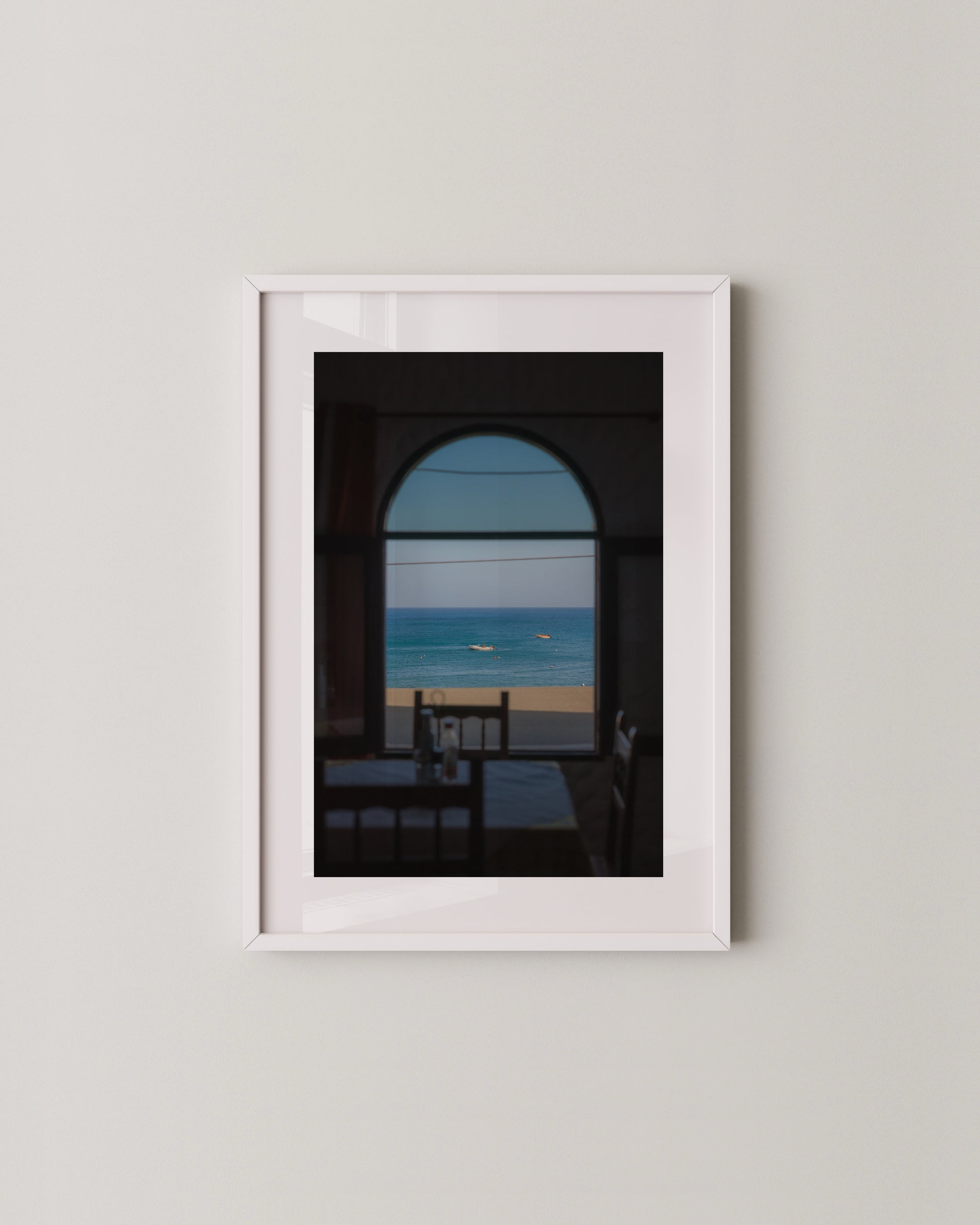A serene three-piece wall art set featuring modern coastal photography, desert cliffs, ocean views, and abstract green landscapes. This minimalist gallery wall brings a warm, natural tone to any dining area or living space. Perfect for those who love clean lines, sunlit tones, and modern Mediterranean interiors.