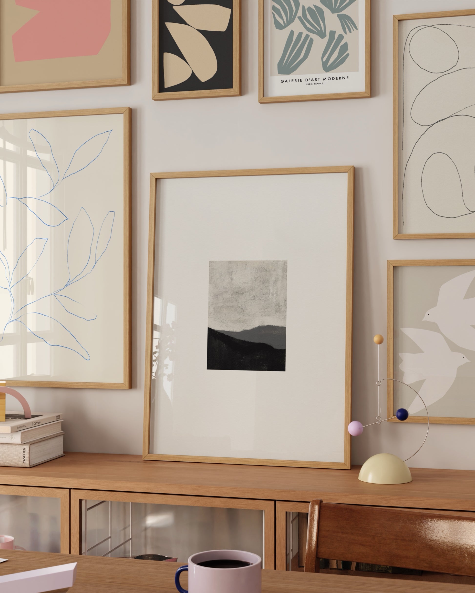 Curated gallery wall featuring neutral and modern abstract prints, including minimalist shapes, line art, and organic forms. Designed for a calm, contemporary look that suits Scandinavian and Japandi interiors. Instantly download and print for easy DIY home styling.