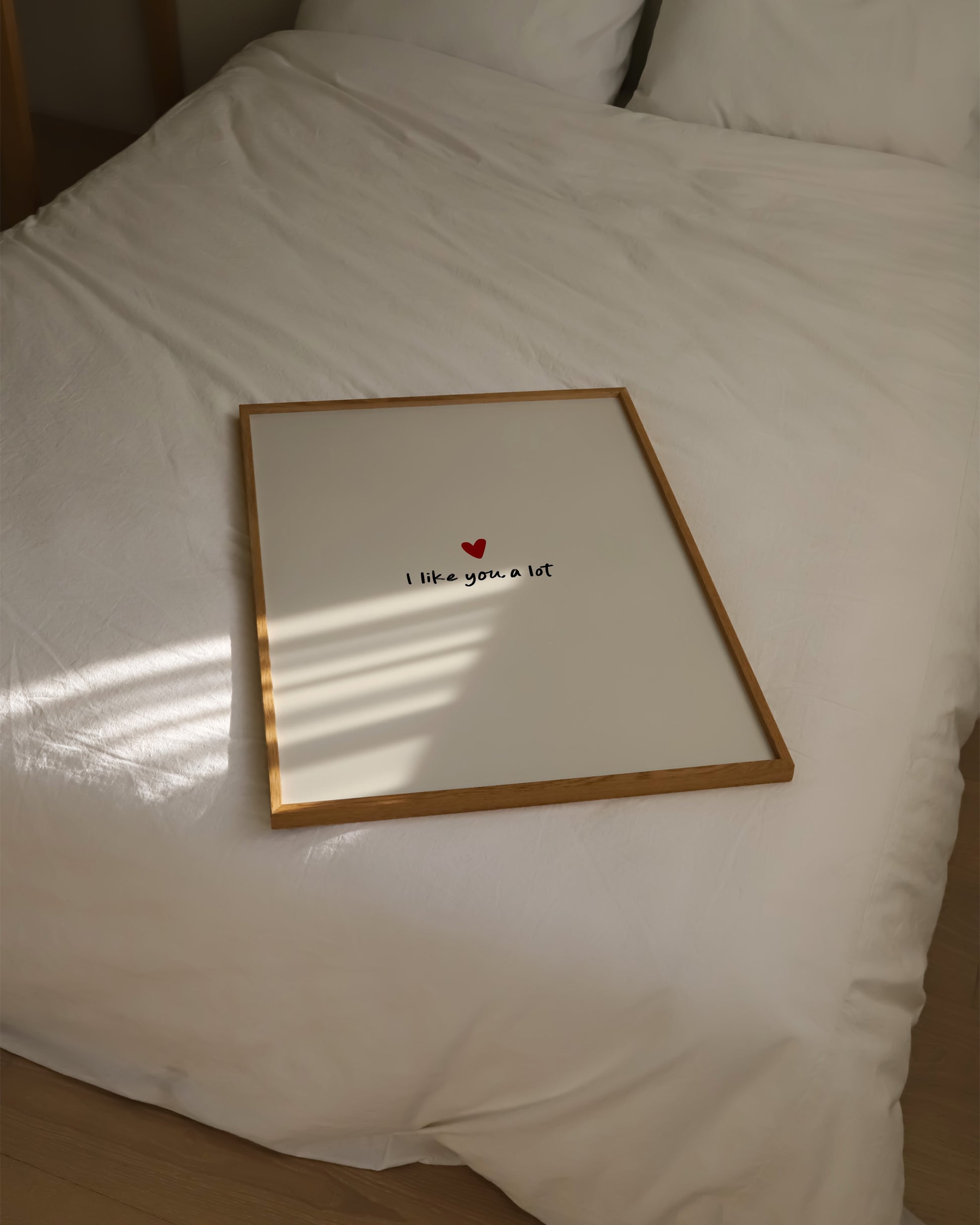 A simple quote print with a hand-drawn heart and soft neutral tones. I Like You a Lot is understated, calm, and easy to live with, a quiet way to say something kind without making a big deal of it. Works just as well as a small gift as it does styled into a modern gallery wall.