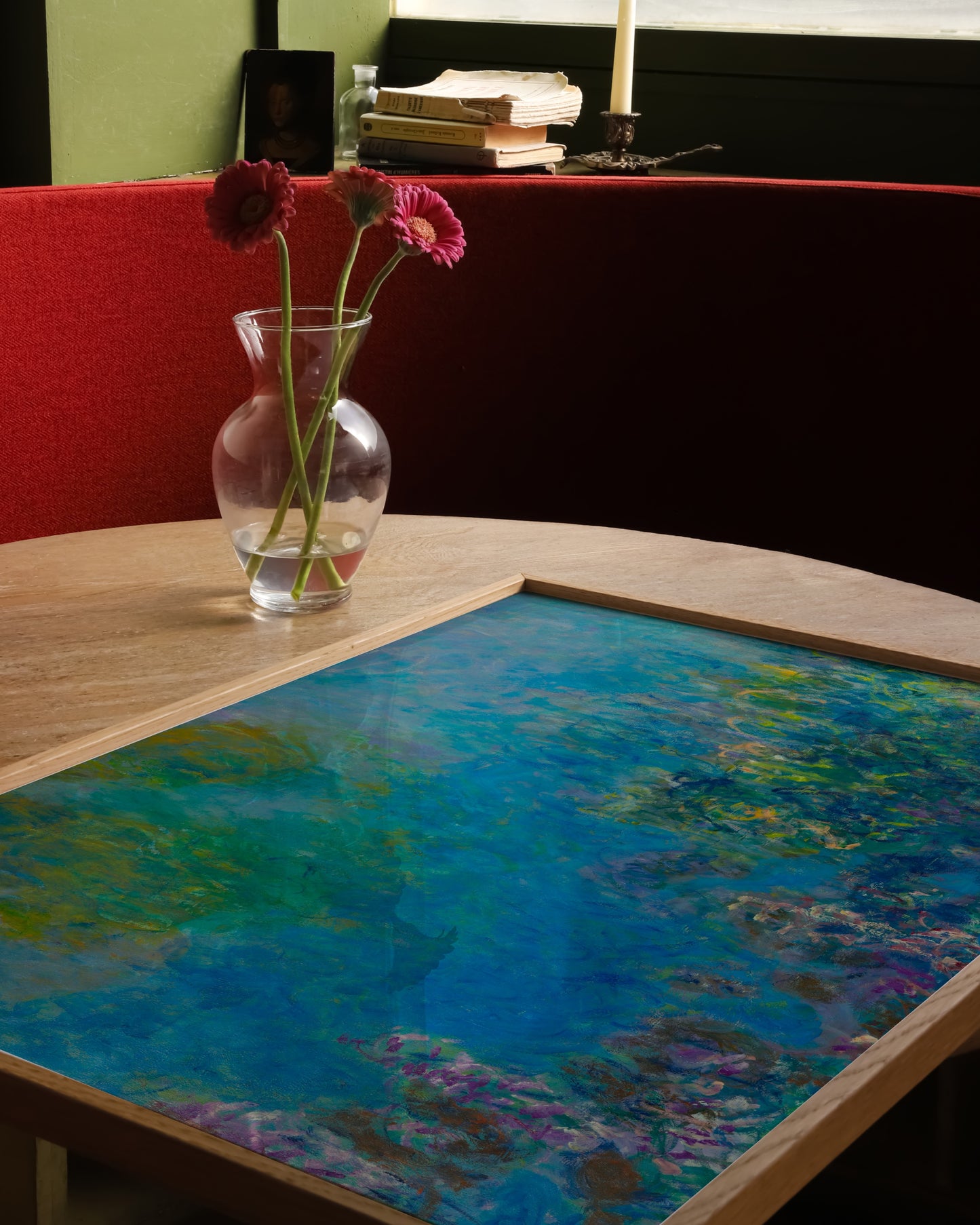 This printable art features an authentic detail from Claude Monet’s Water Garden series, showcasing his signature impressionist brushstrokes and luminous palette. With vibrant blues, greens, and soft floral accents, it brings a timeless and painterly touch to gallery walls, bedrooms, or living spaces.