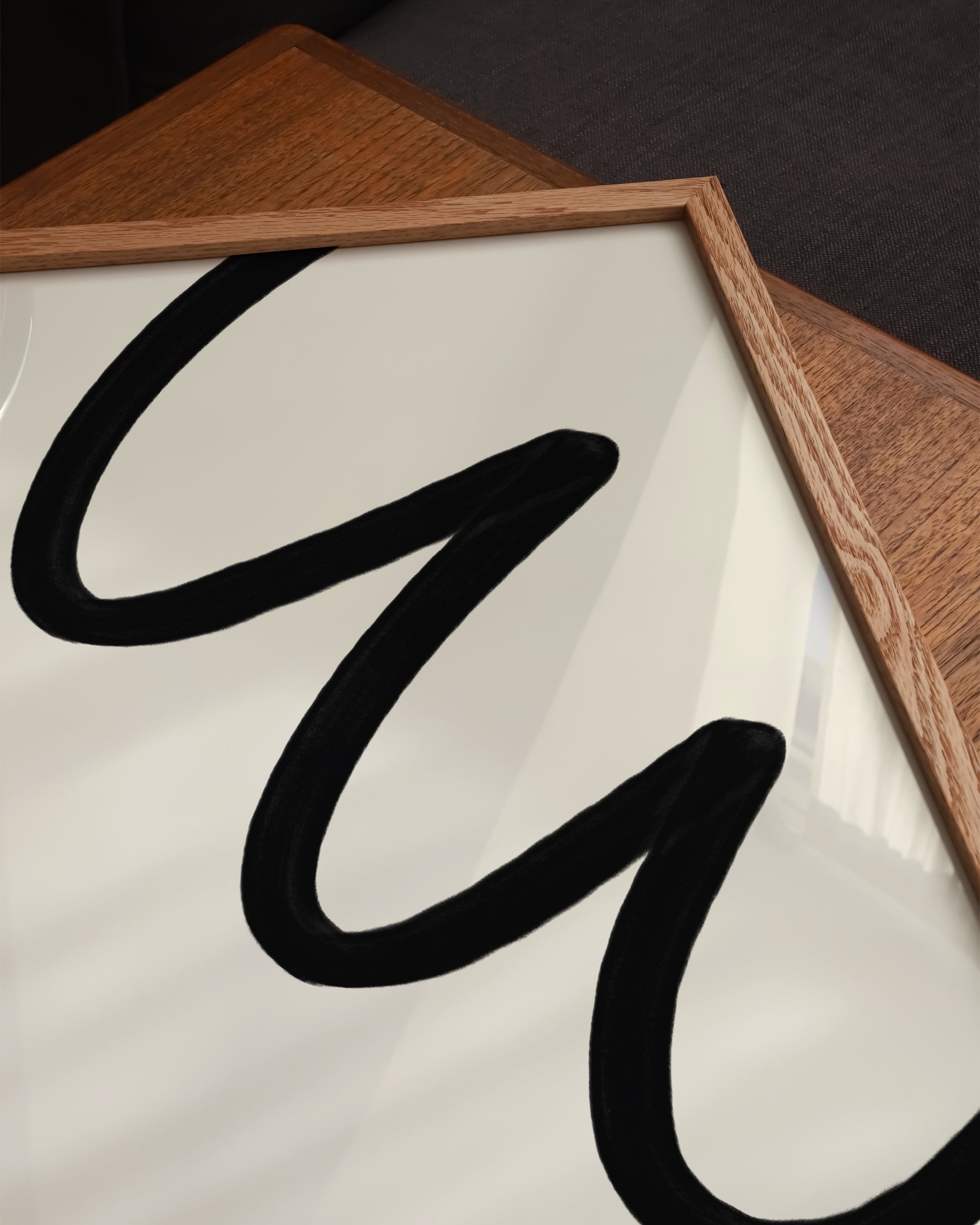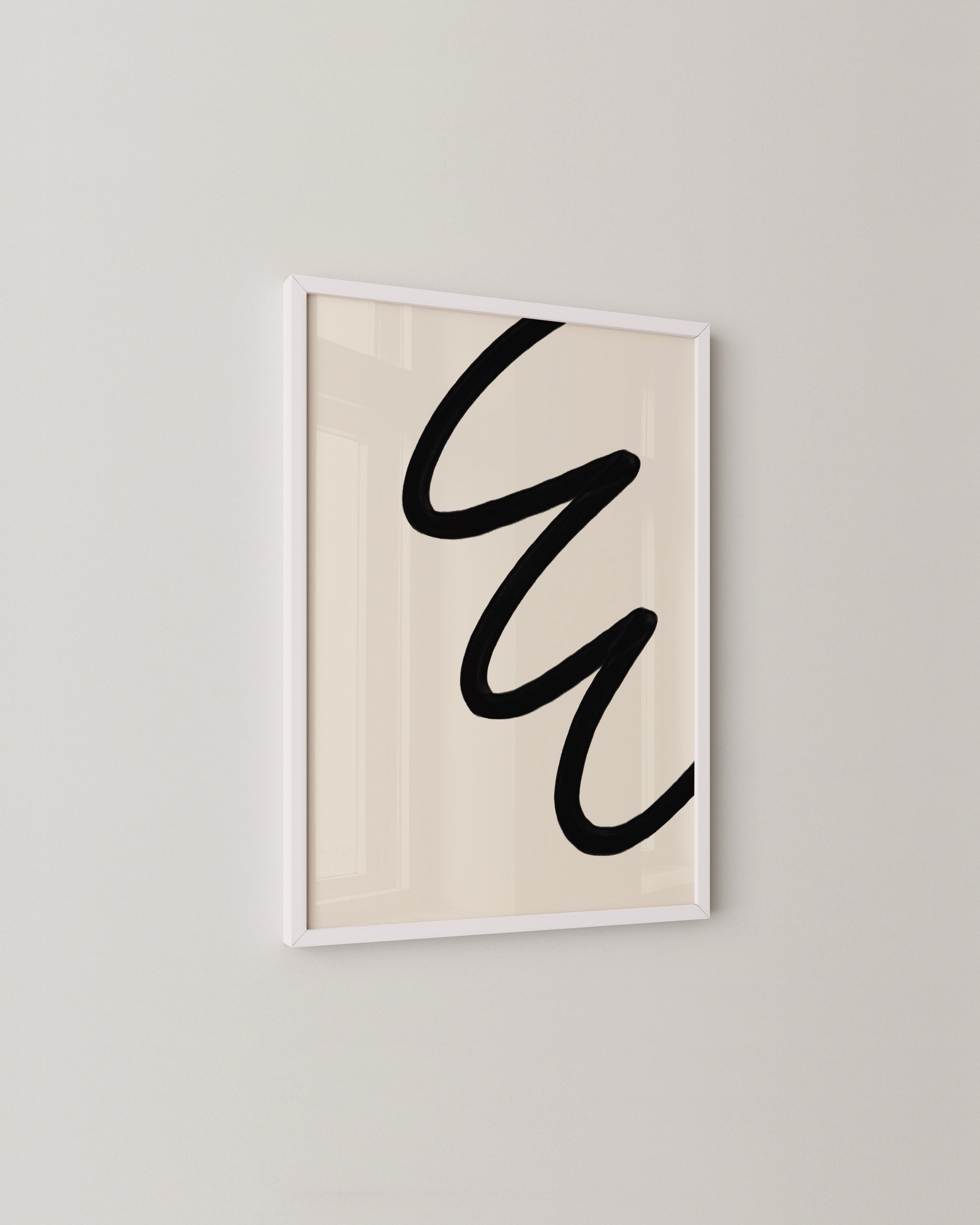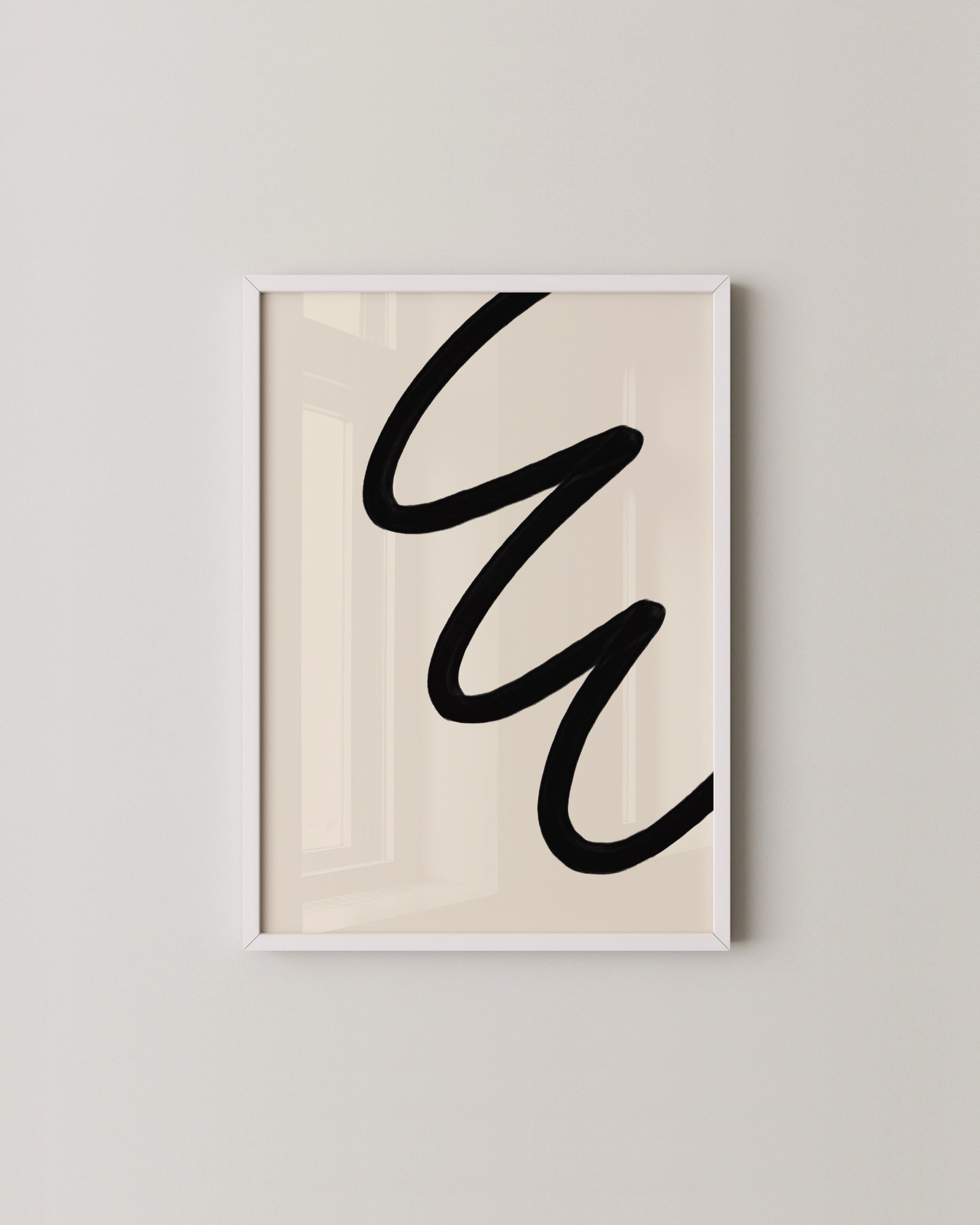 A simple black line artwork with a playful looping design on a beige background. This minimalist abstract print brings a bold yet calming touch to any space, perfect for Scandi or modern interiors.