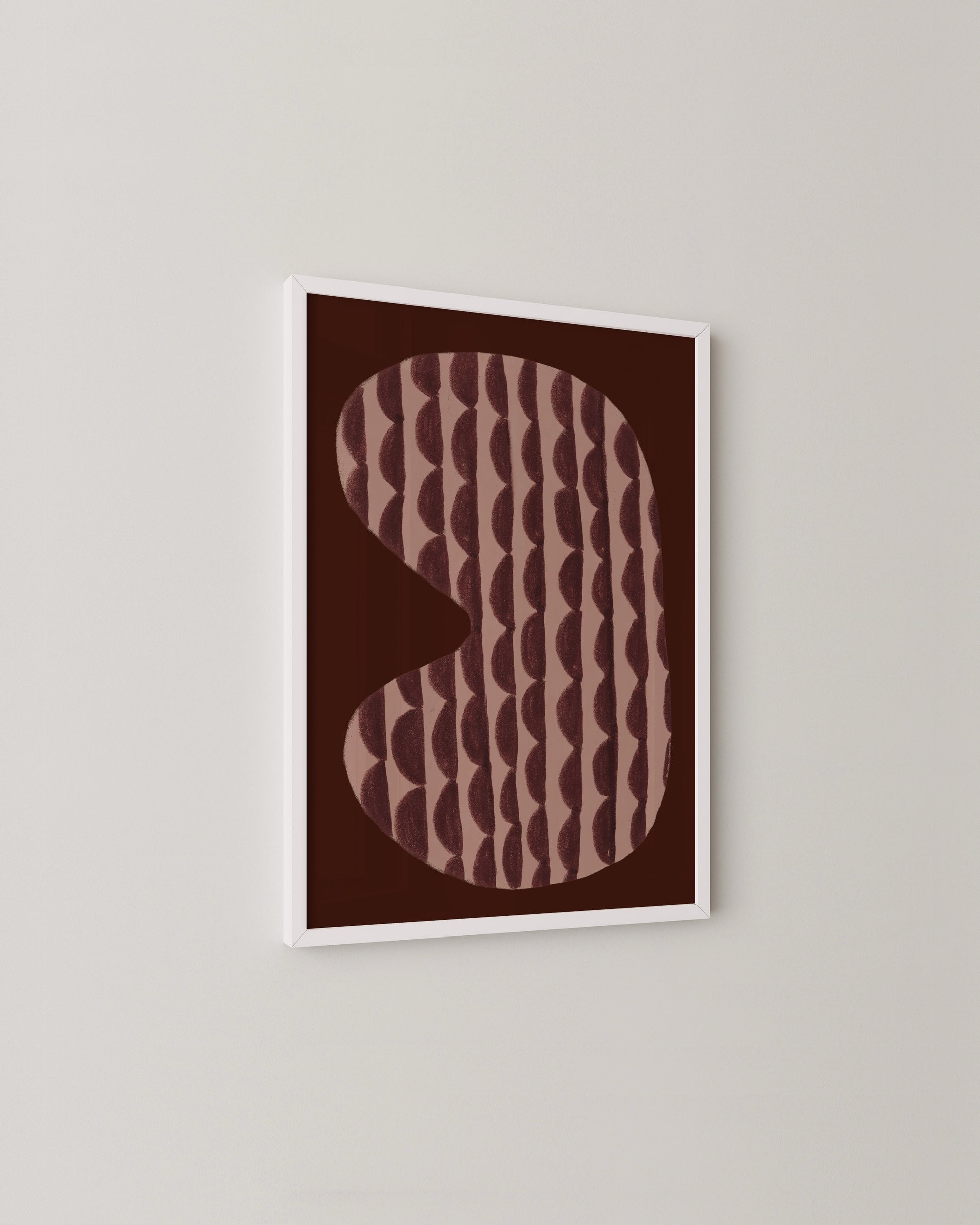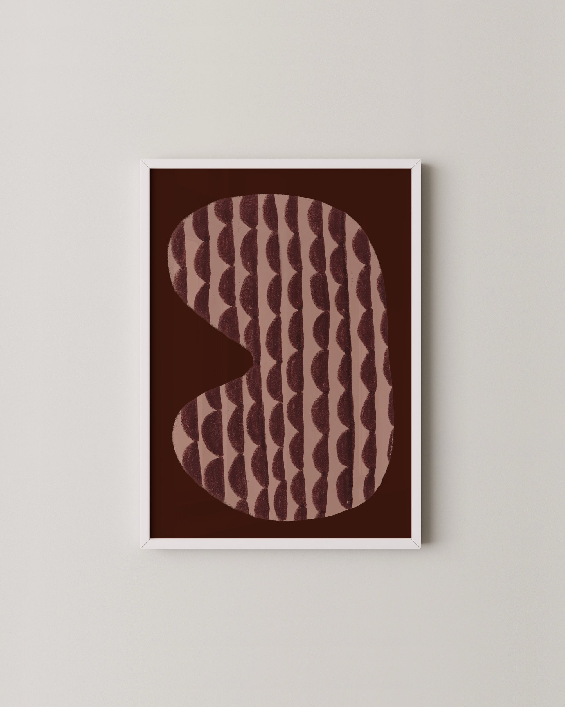 A soft pink organic shape layered with a repeating burgundy pattern, set against a deep burgundy background. This minimal abstract print adds warmth and quiet structure to any room, perfect for curated gallery walls and modern interiors.
