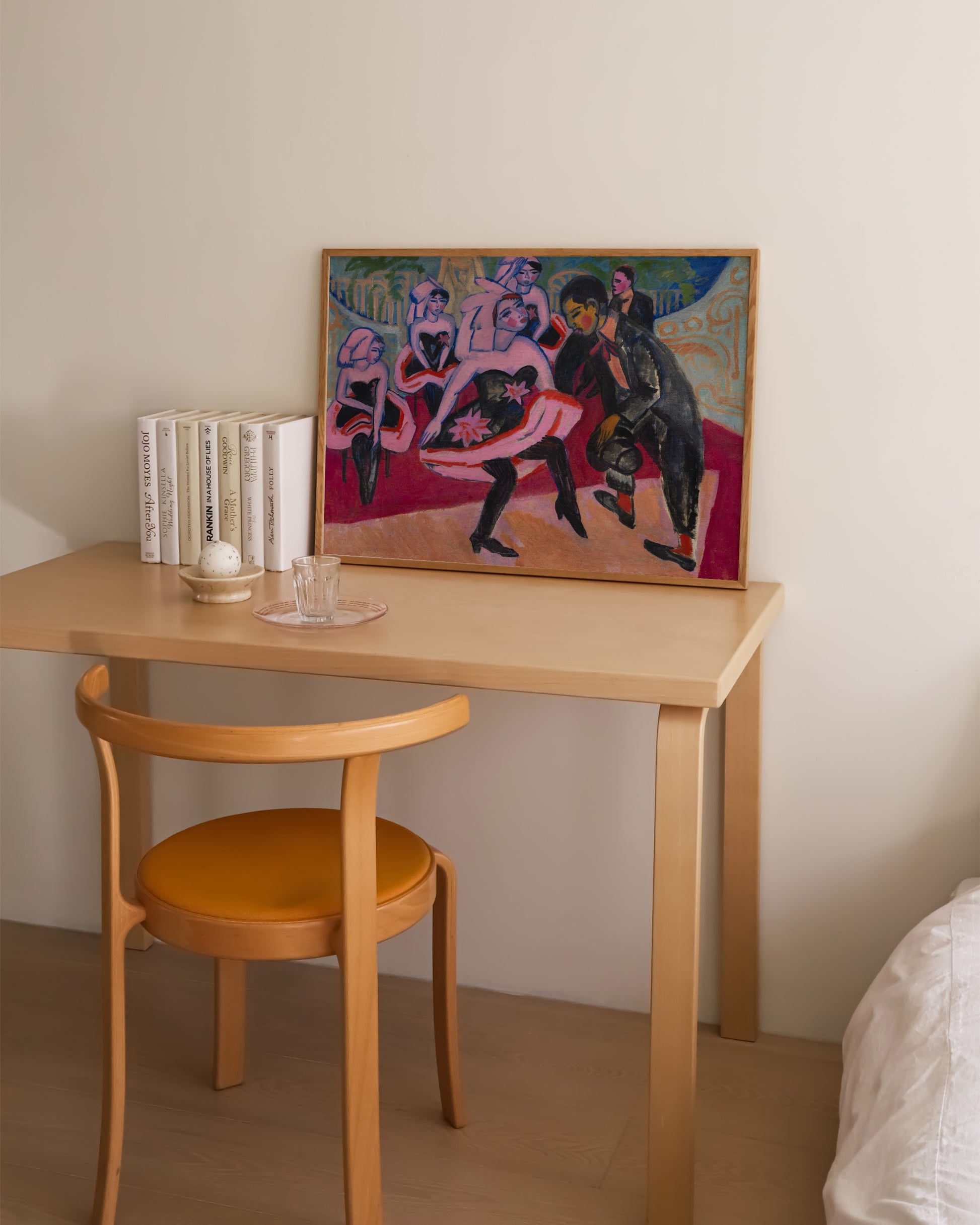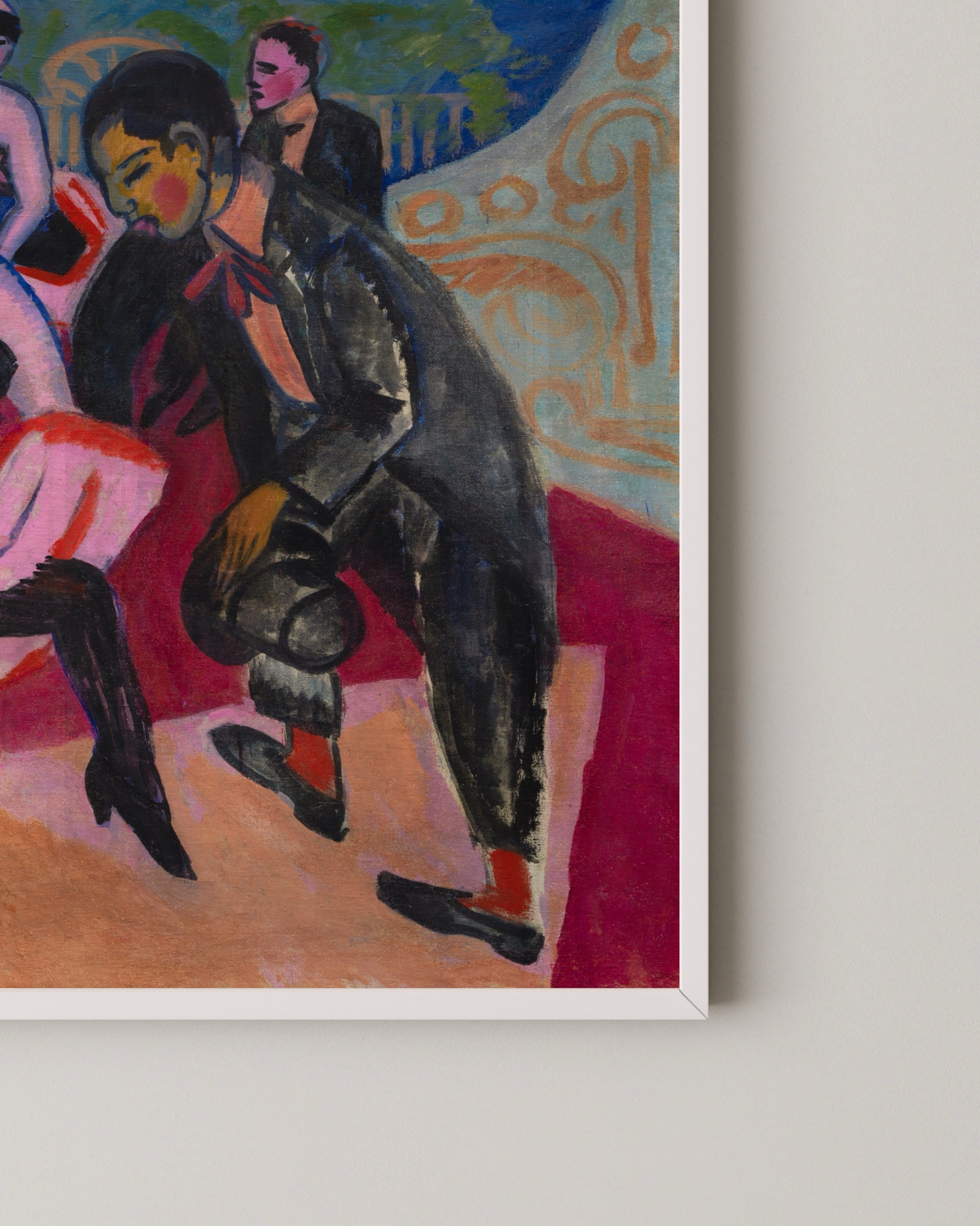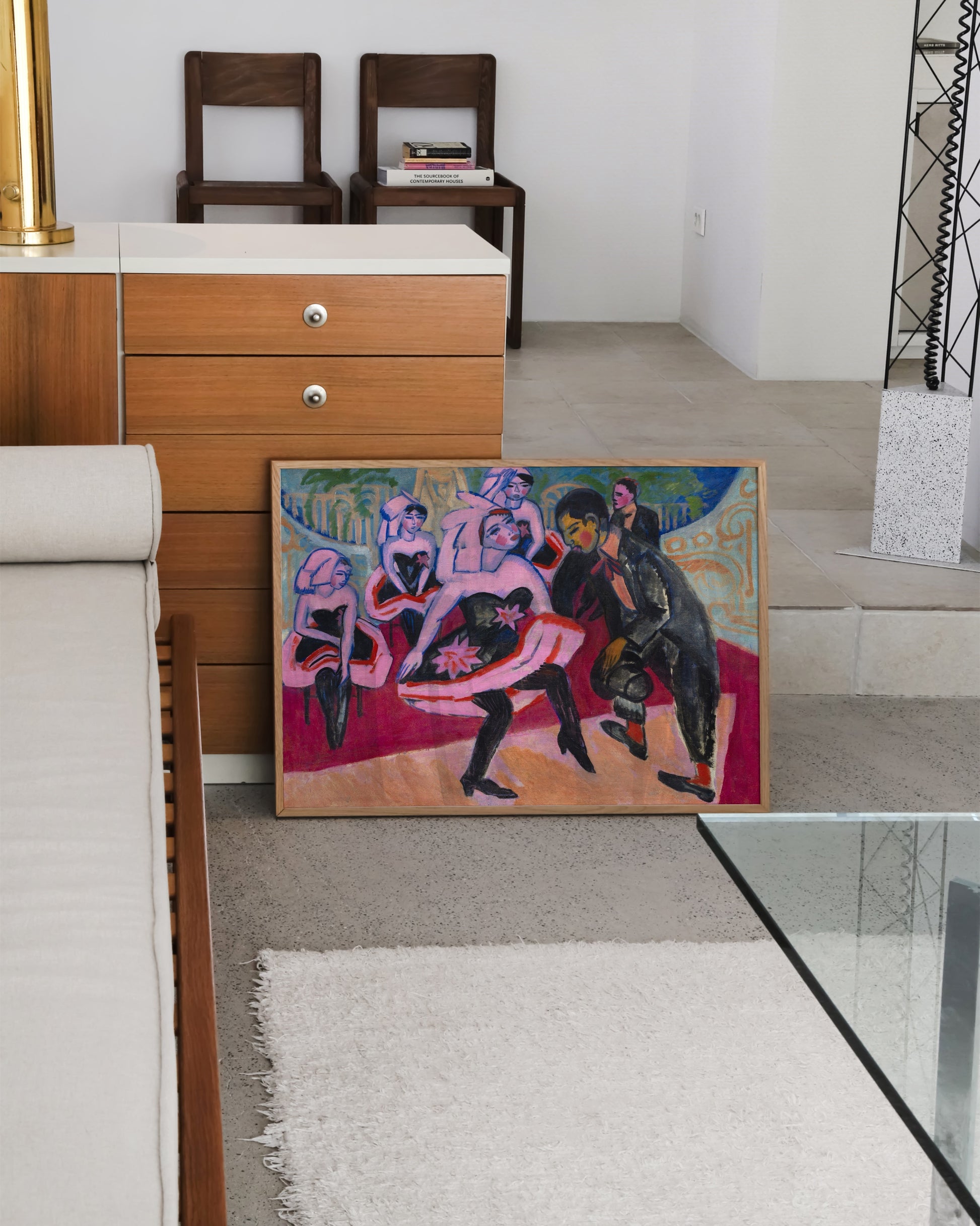 A vibrant vintage reproduction of Tanz im Varieté by Ernst Ludwig Kirchner. This expressive artwork captures the movement and atmosphere of a lively cabaret scene, painted in bold color and dynamic form, perfect for adding artistic energy to modern or vintage-inspired spaces.